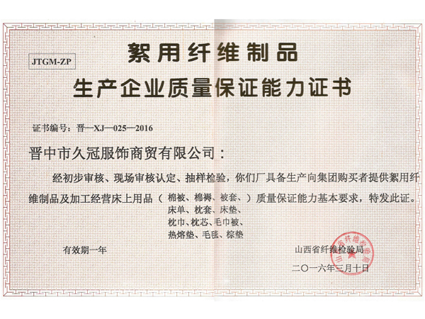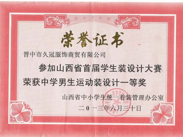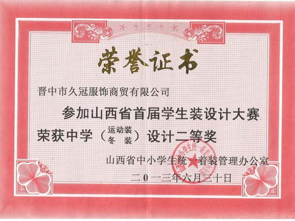 山西久冠服飾有限公司位于晉商故里山西省晉中市。公司注冊(cè)商標(biāo)“久冠”,是山西省教育學(xué)會(huì)學(xué)生服被裝專業(yè)委員會(huì)會(huì)長單位,中國質(zhì)量萬里行促進(jìn)會(huì)理事單位,中國教育裝備行業(yè)協(xié)會(huì)學(xué)校后勤裝備管理分會(huì)常務(wù)理事單位。